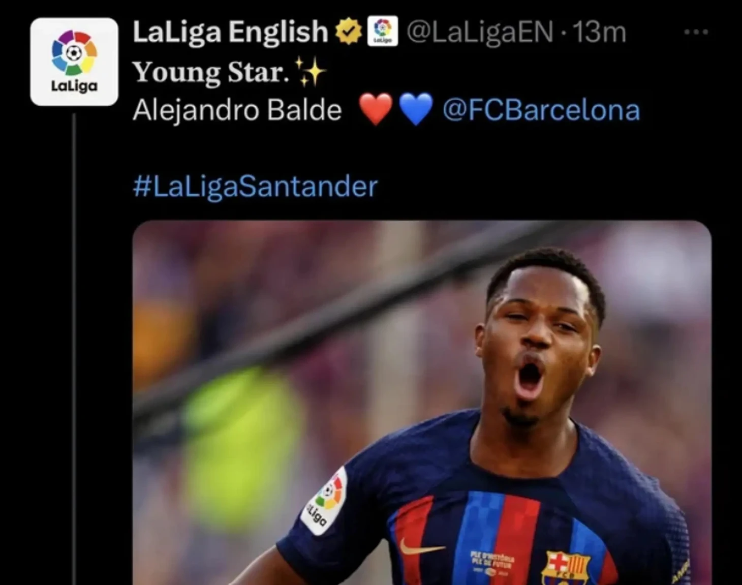 Twitter Ла Лиги допустил грубую ошибку, перепутав Ансу Фати и Алехандро Бальде.