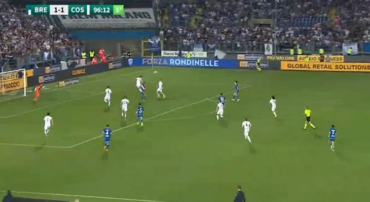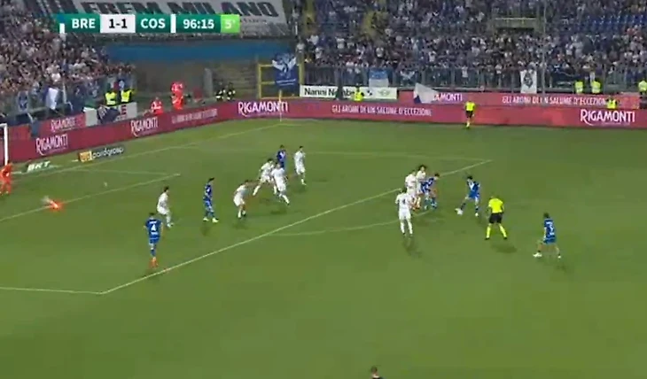 «Брешия» и «Козенца» играли стыковые матчи за право остаться в Серии B. Первый матч «Козенца» выиграла 1:0, в ответном с тем же счетом вела «Брешия».