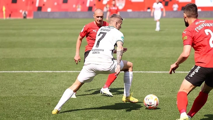 Это вышел очень увлекательный матч, где были эмоции, драма и море забитых мячей. Ростовчане вроде бы решили исход матча еще в начале тайма: сначала после подачи Щетинина открыл счет Голенков, а потом после длинного заброса, Голенков выиграл борьбу у Быстрова и спокойно перекинул Шелию, оформив дубль. Но эти голы раззадорили грозненцев, которые собрались и стали забивать свои мячи.
