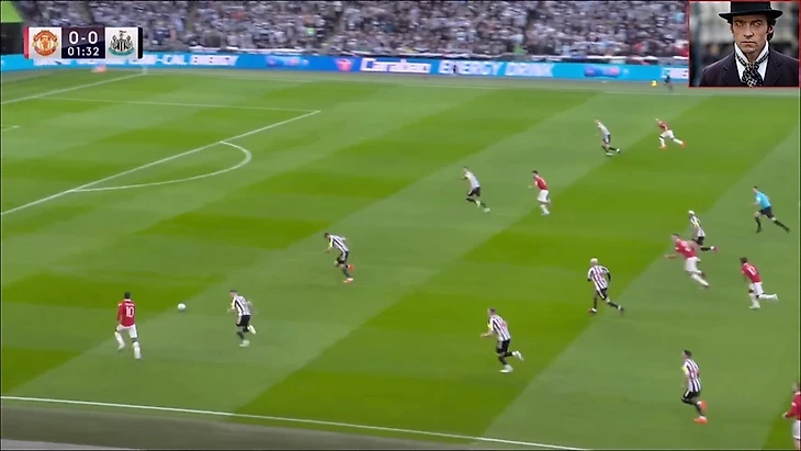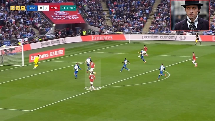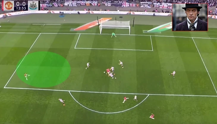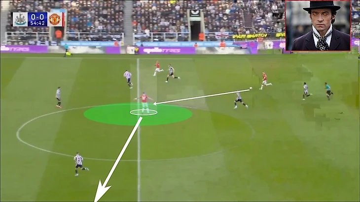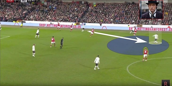 С позиции центрального нападающего сложно было бы оказаться в такой ситуации, а вот с позиции полузащитника… Мое почтение 10Хаг, если была и такая идея в том числе.