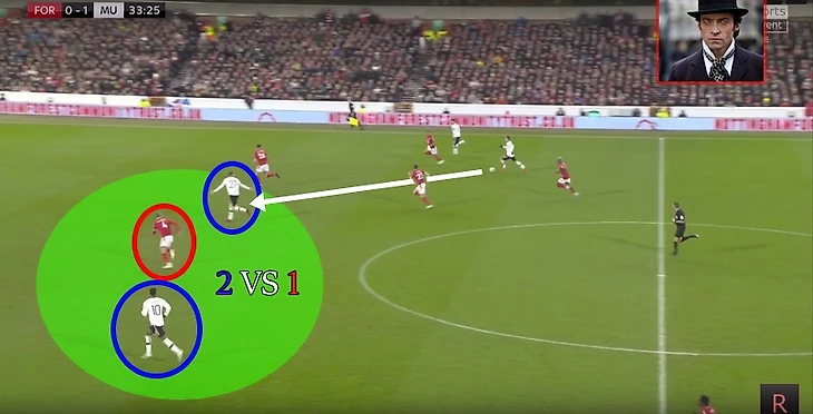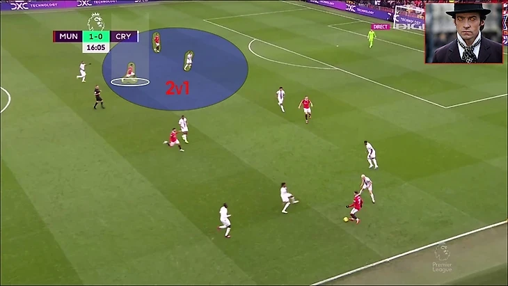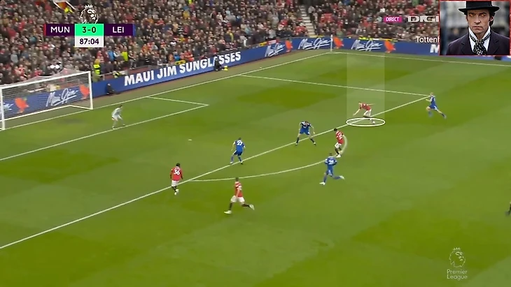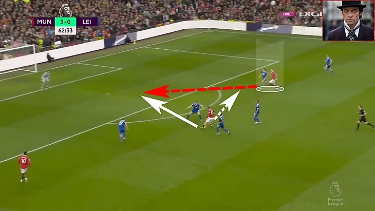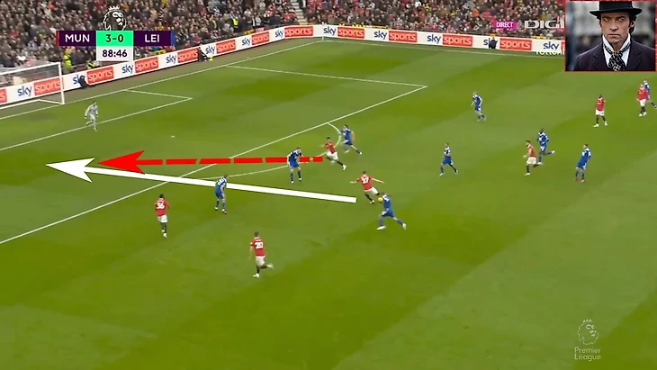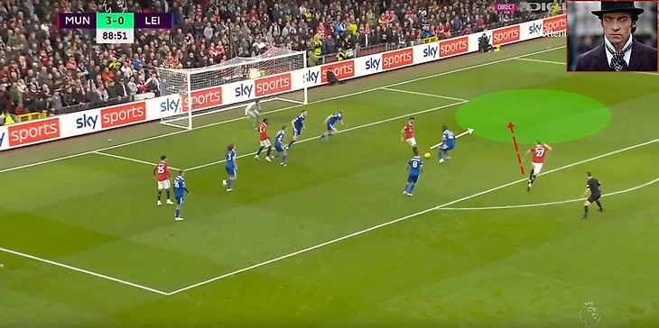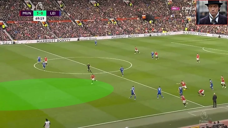 Если бы игрок лис продолжил бы сопровождать Санчо, то Решфорд мог идти в обыгрыш и тем самым делая 3в2 правом фланге вблизи штрафной , в случае удачной обводки