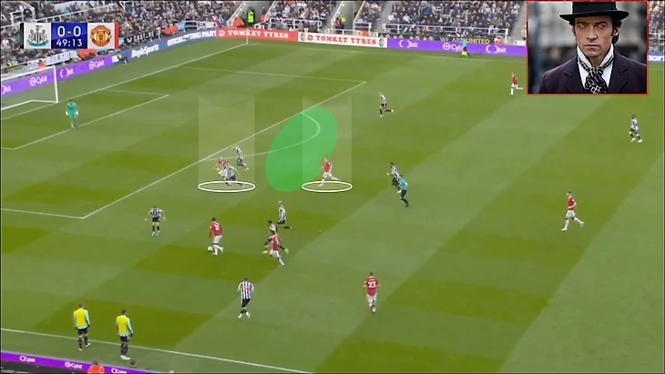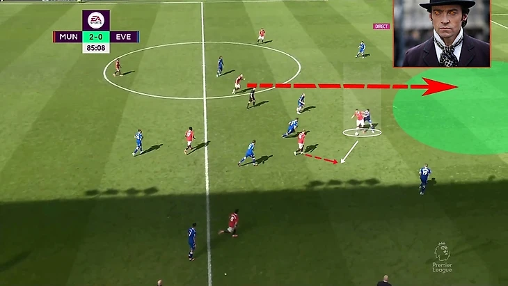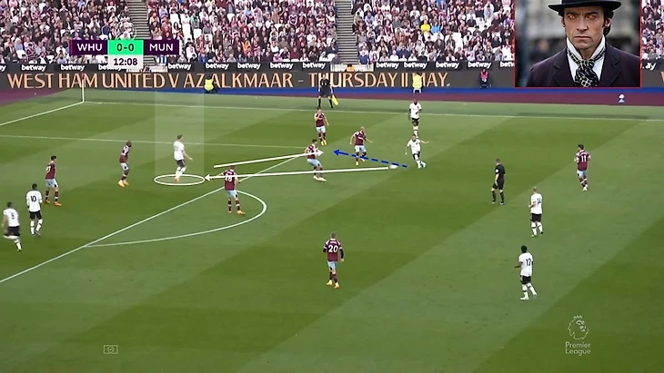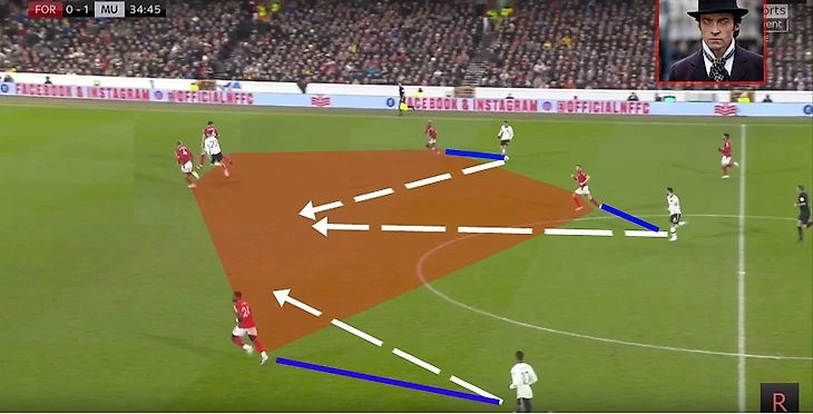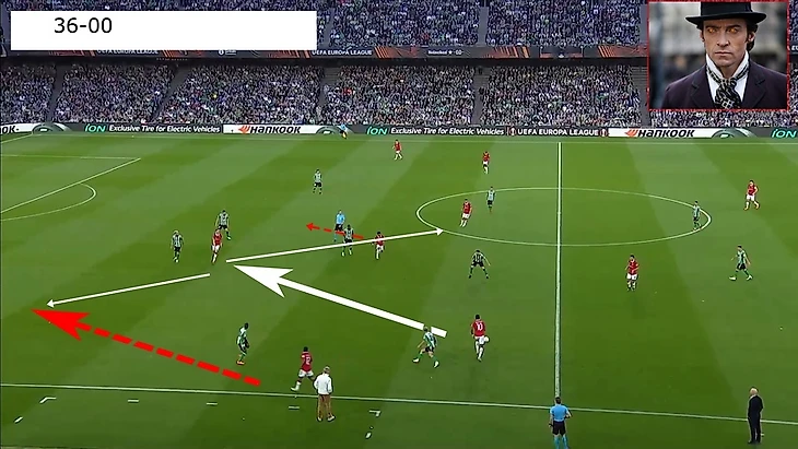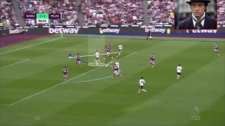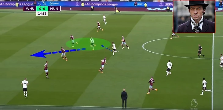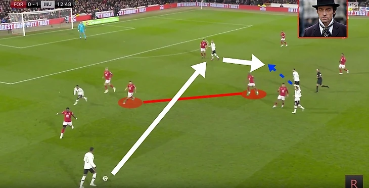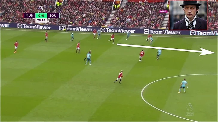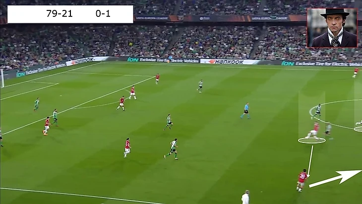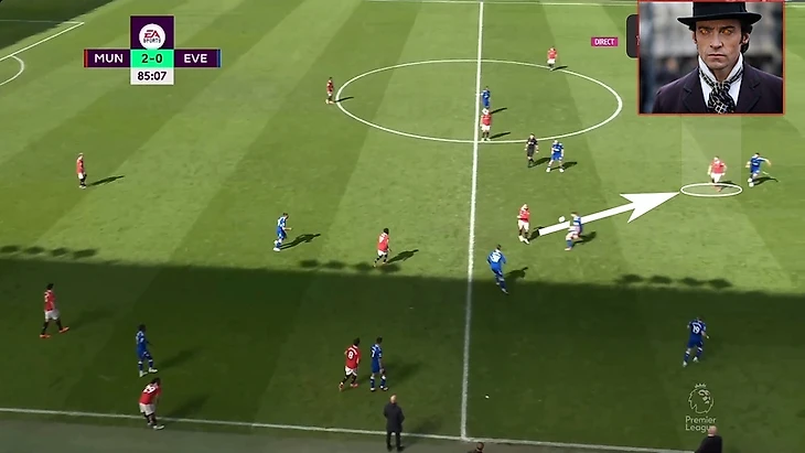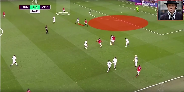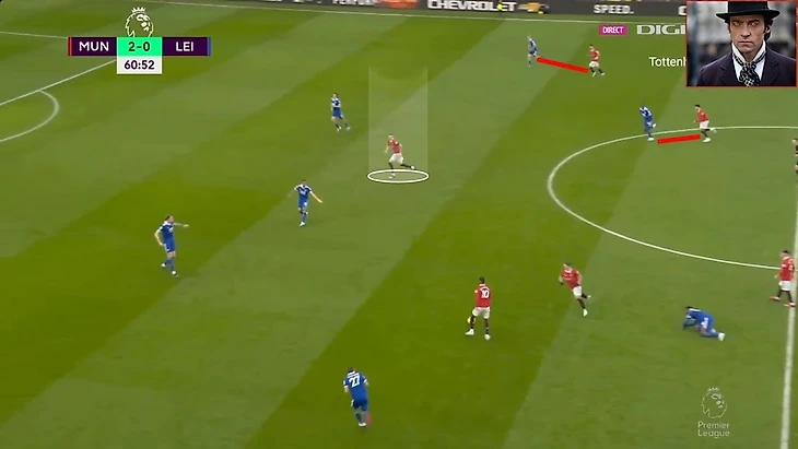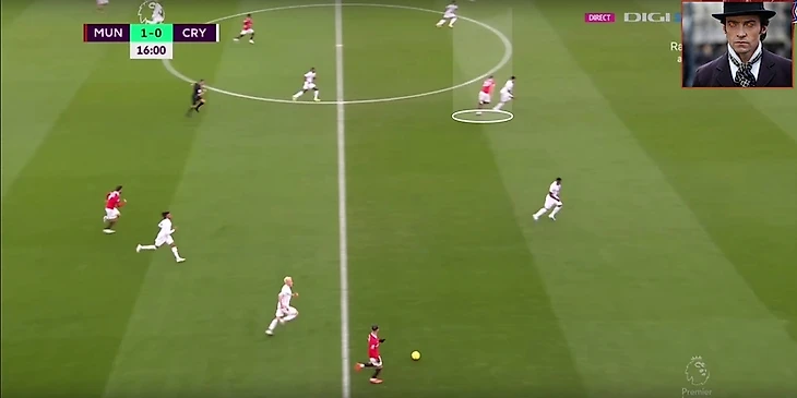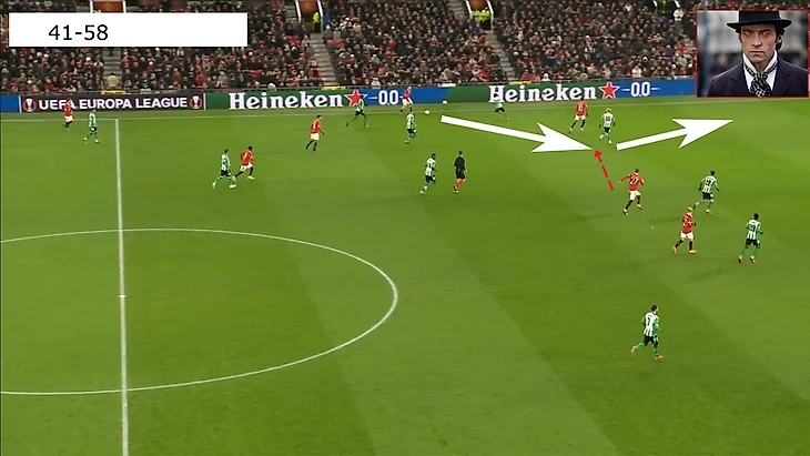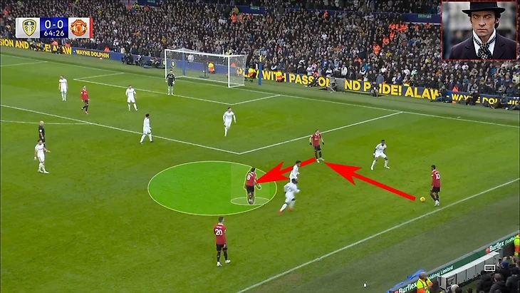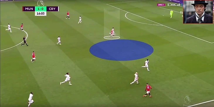 В итоге Фред забрал на себя защитника, при этом все еще имея возможность атаковать глубину, а Маркус Решфорд остался в гордом одиночестве.