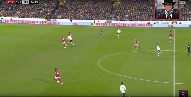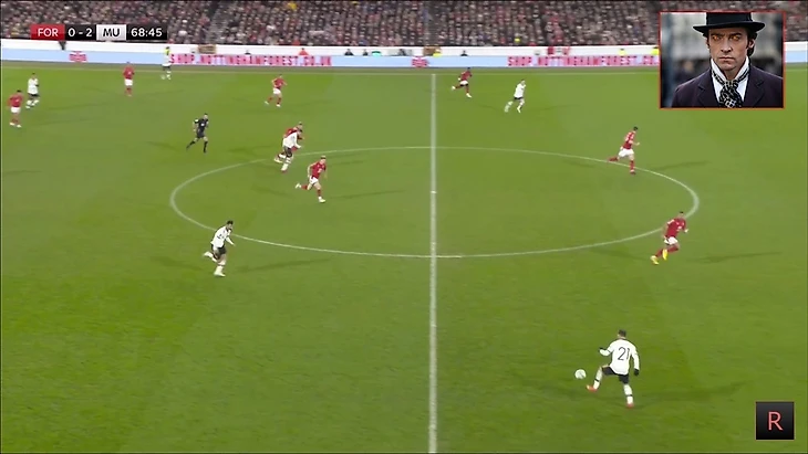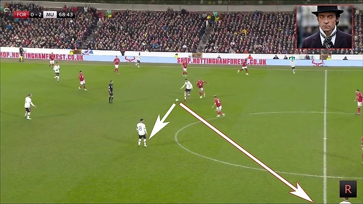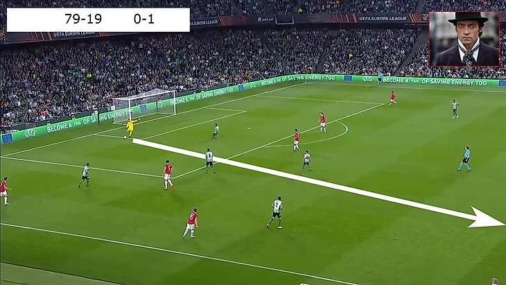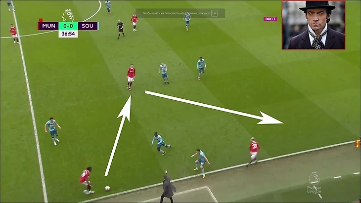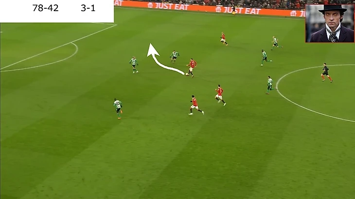 Много свободного пространства и на мяче сам Бруно, выглядело очень перспективно. Жаль, что передача шведкой не получилась, был бы очень классный гол от МЮ.
