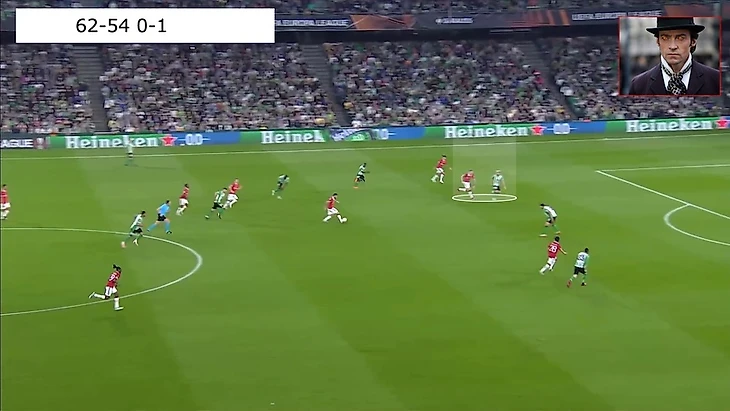 36-54 Юнайтед в 10, но если создаются хорошие ситуации, то грех ими не пользоваться. Вот и тут Ваут (нападающий команды?) с Биссакой использовали это.