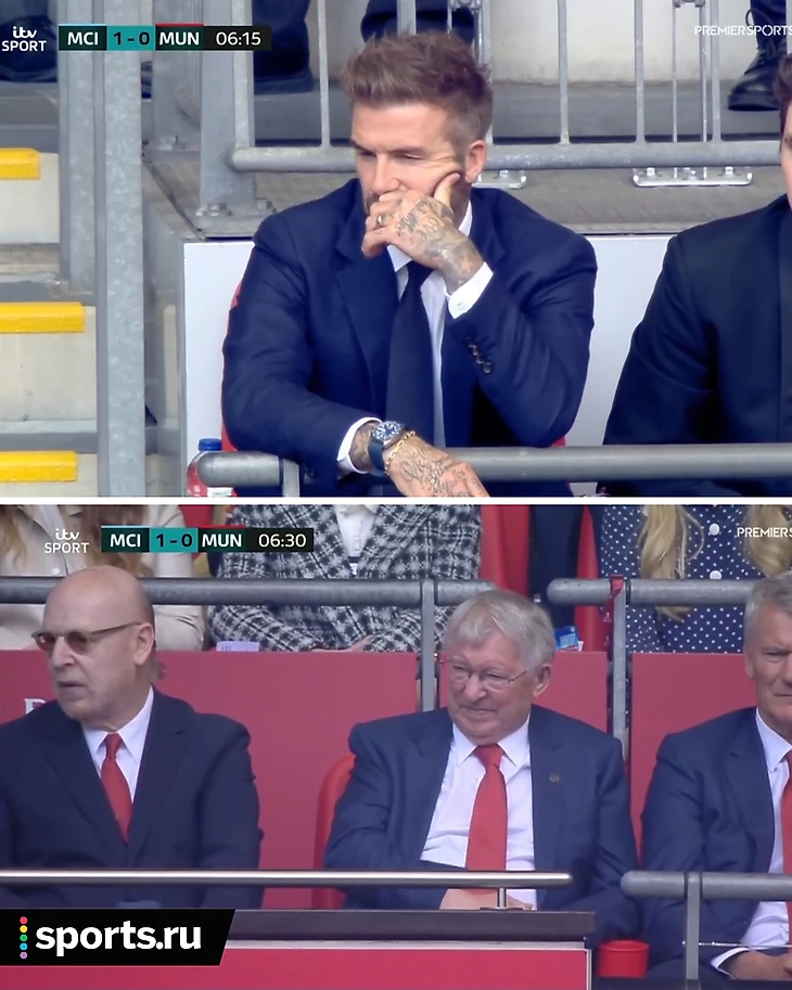 Поддержать «МЮ» на «Уэмбли» приехали легенды клуба – сэр Алекс Фергюсон и Дэвид Бекхэм. И они явно были не восторге от такого начала матча.