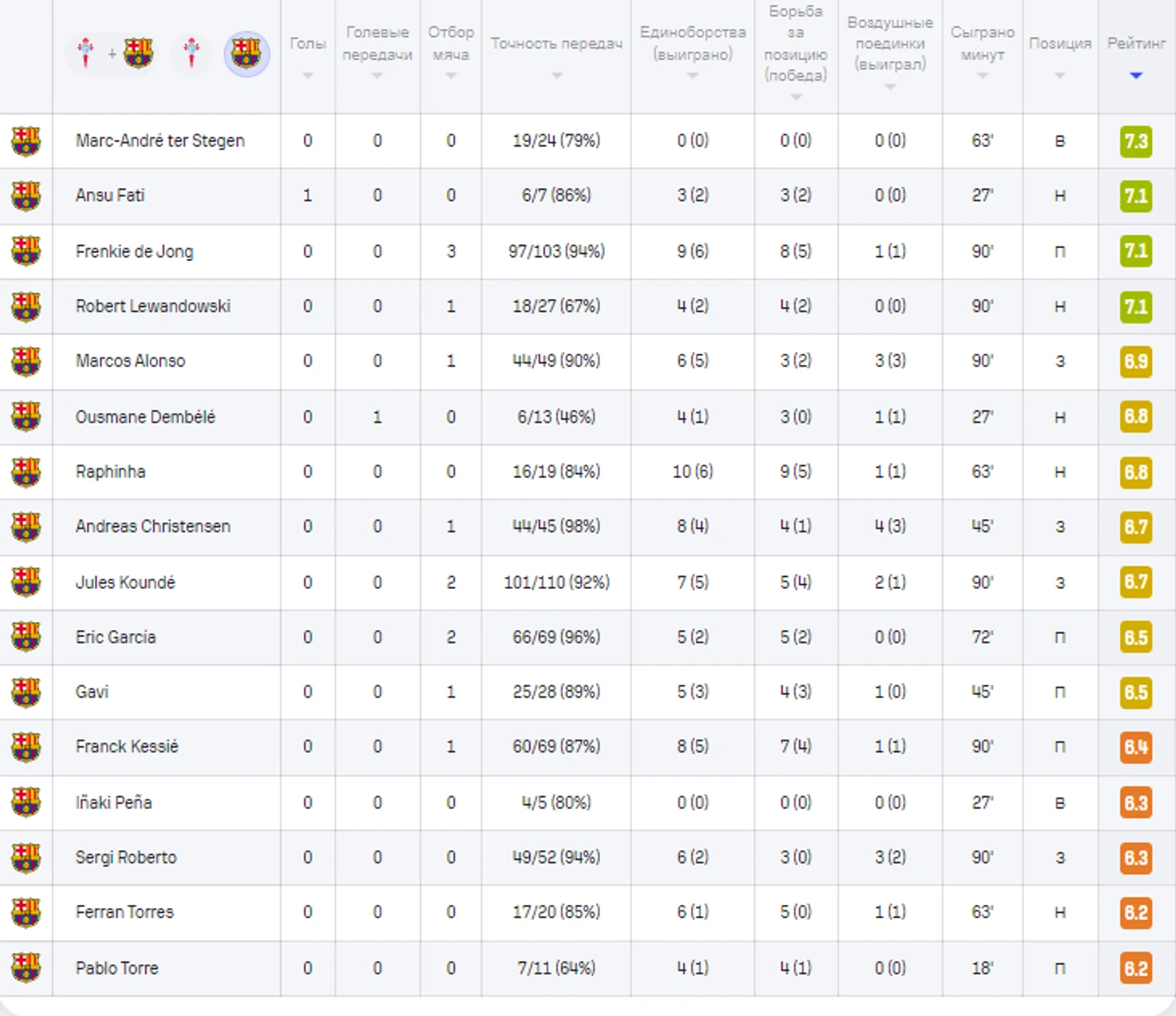 Оценки игроков «Барселоны» за матч против «Сельты»