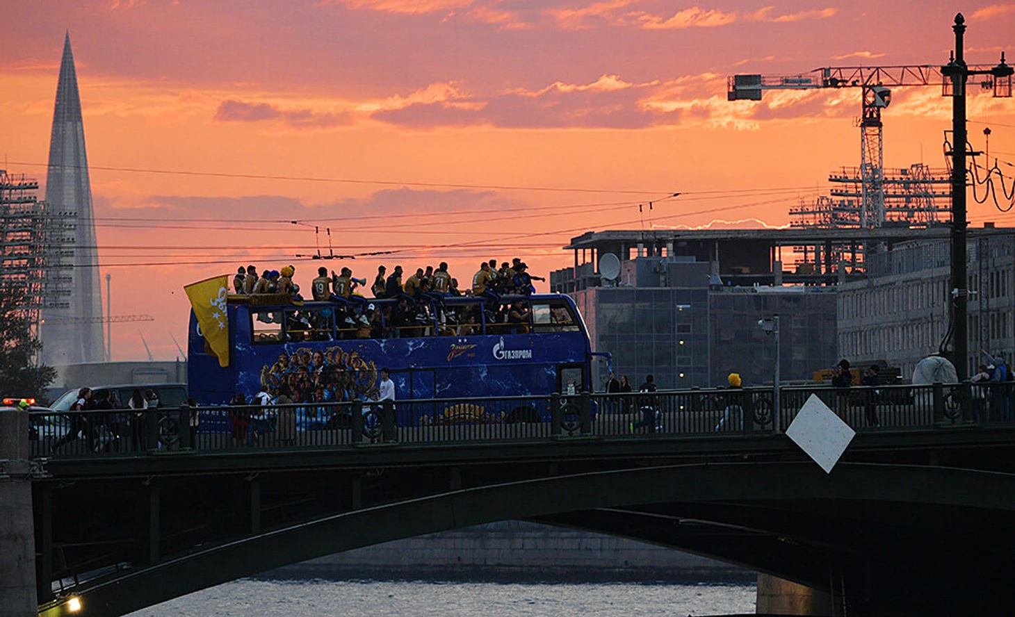 13 мая. Санкт-Петербург радует чемпионский автобус «Зенита» потрясающим цветом вечернего неба.
