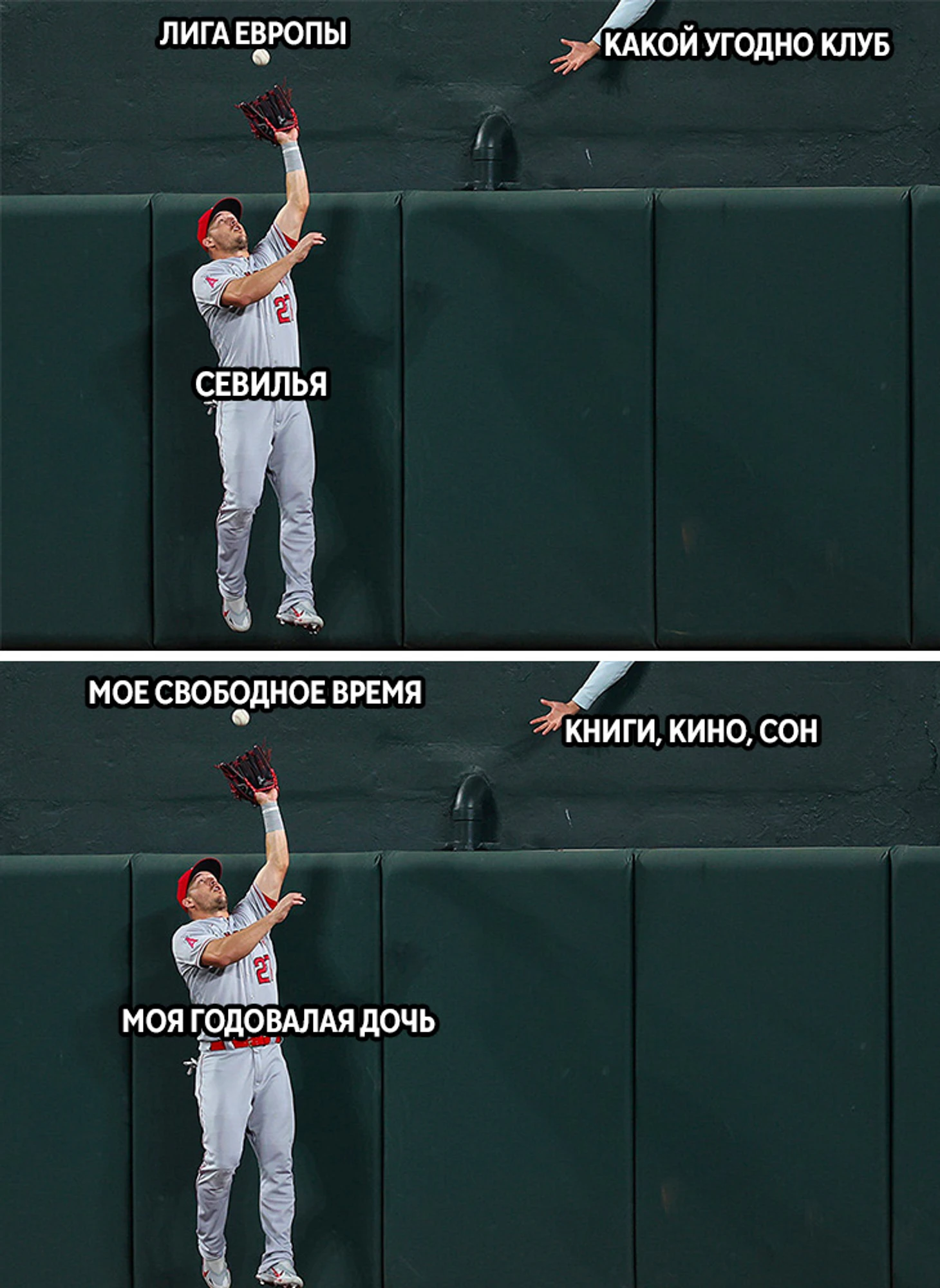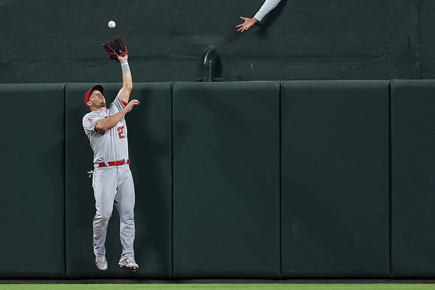 16 мая. Этот болельщик очень пытался, но Майк Траут из «Лос-Анджелес Энджелс» был первым.