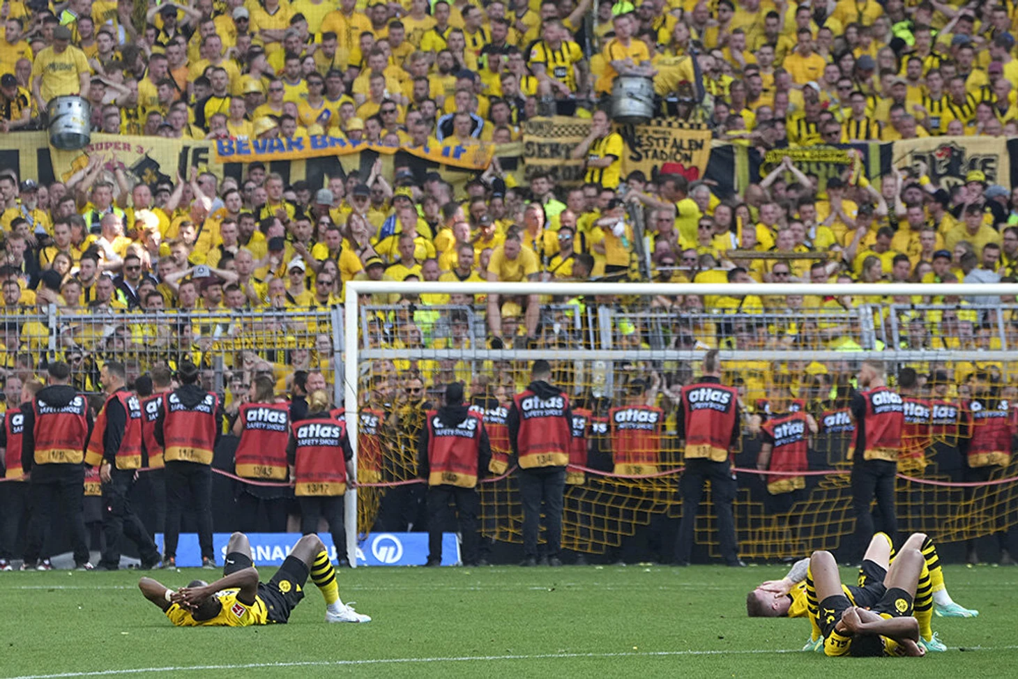 27 мая. Главная боль месяца. «Боруссия» неловко провела чемпионский матч и рухнула на второе место по итогам сезона. Игроки лежат на фоне шокированных трибун «Сигнал Идуна Парк».