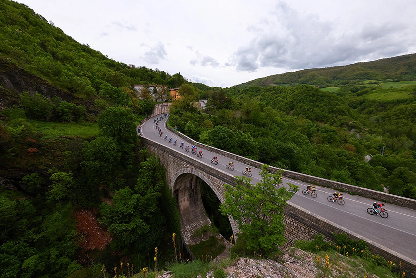 13 мая. Вид на природу и мост в Умбрии, по которому проезжает пелотон на Джиро д’Италия.