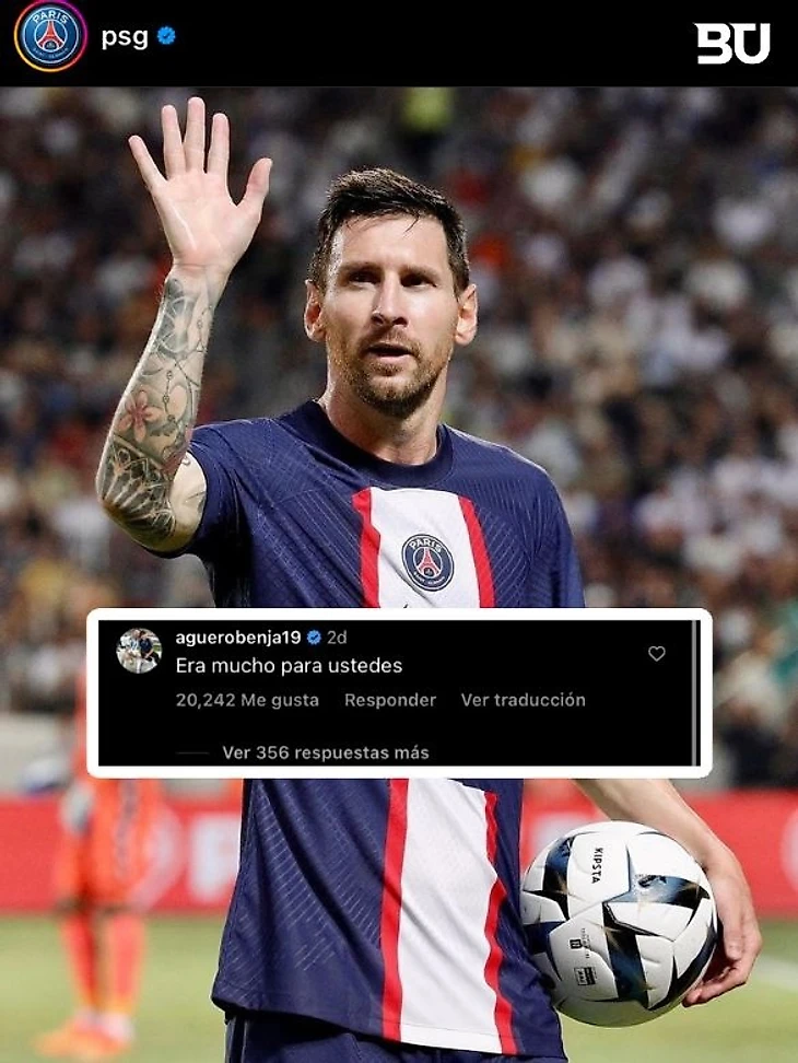 Когда в аккаунте парижан появился пост с заявлением об уходе Лео, его сразу же решил прокомментировать Бенджамин Агуэро. Сын Серхио жестко приложил «ПСЖ», одновременно похвалив Месси: