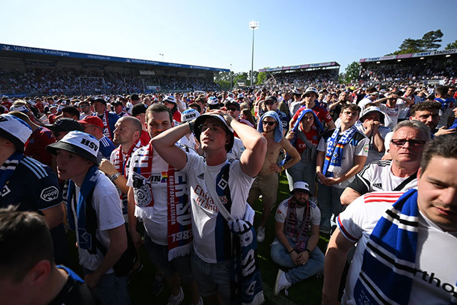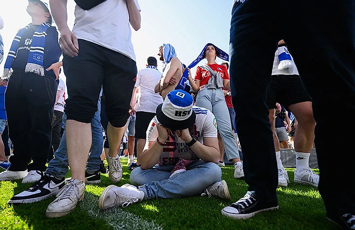 Но представьте, что чувствовали фанаты «Гамбурга», которые следили за развязкой вживую на стадионе в Зандхаузене. Диктор местной арены не удостоверился, что параллельная игра «Хайденхайма» завершилась, и поздравил гостей с возвращением в Бундеслигу. Сотни людей в экстазе вырвались на поле, но это был грандиозный пранк – в итоге люди выбежали праздновать не долгожданный промоушн, а собственную казнь. «Хайденхайм» за несколько минут превратил 1:2 в 3:2, а счастливейшие глаза болельщиков «Гамбурга» в момент опустели.