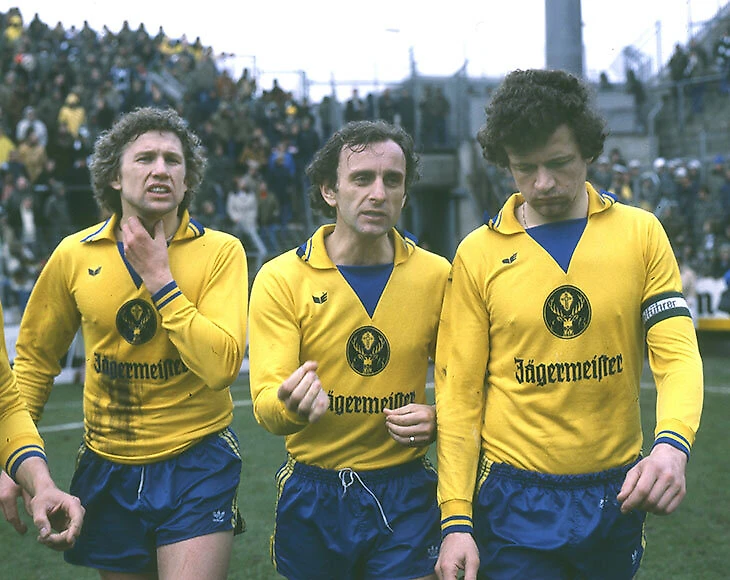 «Айнтрахт» и Jägermeister заключили контракт на 5 лет и 800 тысяч марок. Пришлось идти на хитрость, потому что реклама в чемпионате Германии была под запретом. И менять логотип. До 1972 года на эмблеме «Айнтрахта» был красный лев на треугольном щите (отсылка к Генриху Льву, монарху из династии Вельфов, который правил в Брауншвейге в IX веке). Маст предложил заменить льва на священного оленя с логотипа ликера, слегка изменив фон и добавив по бокам буквы E и B (Eintracht Braunschweig).