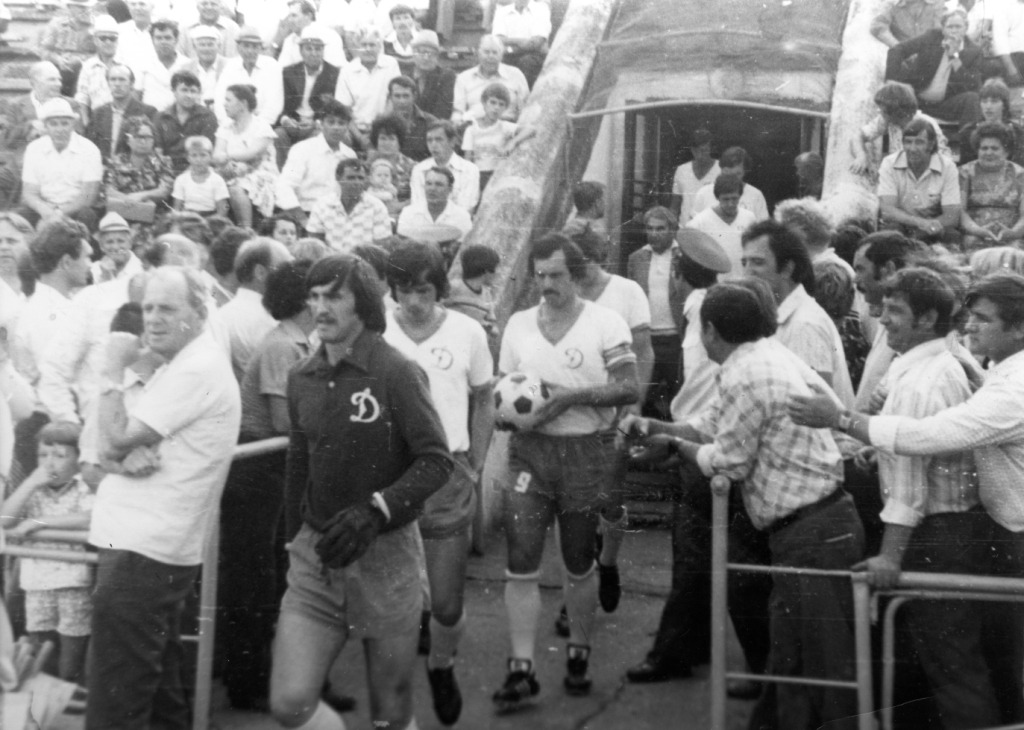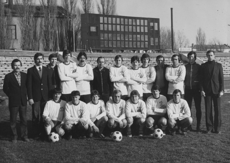 1980 год. Впереди - голкипер Вадим Дегтярь, с мячом в руках - капитан Николай Персук