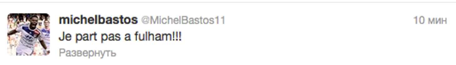 17:18 Le Parisien подтверждает, что «Лион» принял предложение «Фуэлхэма» по Мишелю Бастосу. Сумма трансфера, предположительно, составить 7 миллионов фунтов.