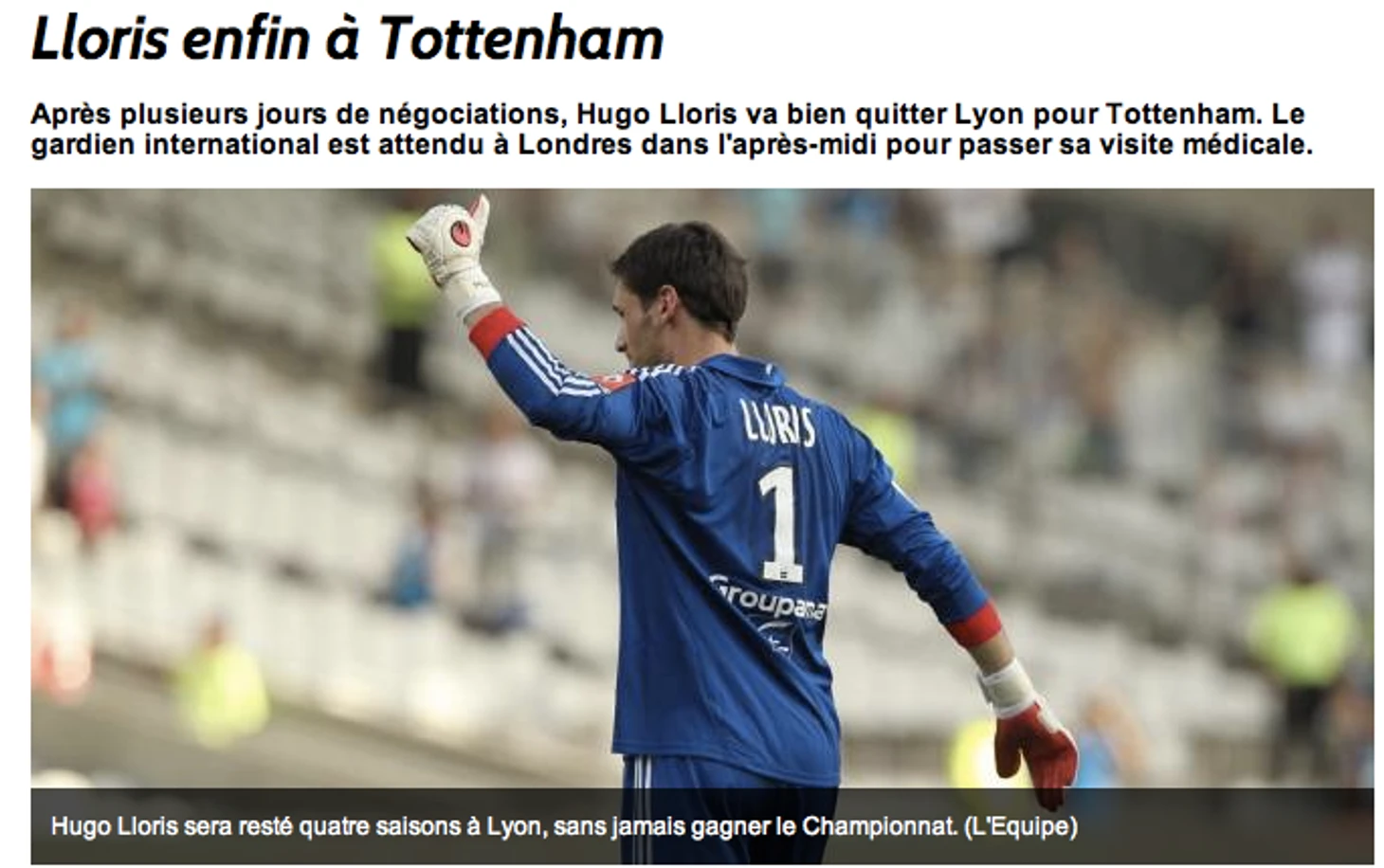 01.06. «Лион» подтвердил переход Уго Льориса в «Тоттенхэм» за 10 миллионов евро! Еще 5 миллионов лондонский клуб должен будет выплатить в случае завоевания каких-либо трофеев. Контракт подписан на 4 года.