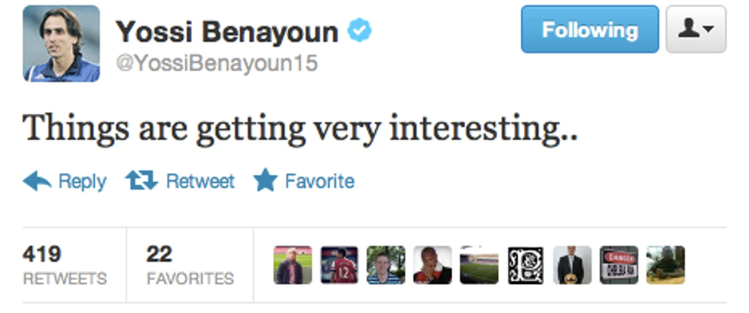 02.28. Йосси Бенаюн тем временем в своем твиттере подтвердил, что его арендовал «Вест Хэм»: «У меня было три предложения, но не от «Ливерпуля» и «Арсенала», как говорили в СМИ. Я перешел в «Вест Хэм» и доволен этим»