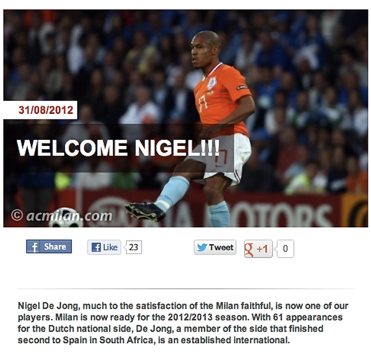14:13 Вот так сейчас выглядит официальный сайт «Милана»: «Добро пожаловать, Найджел!»