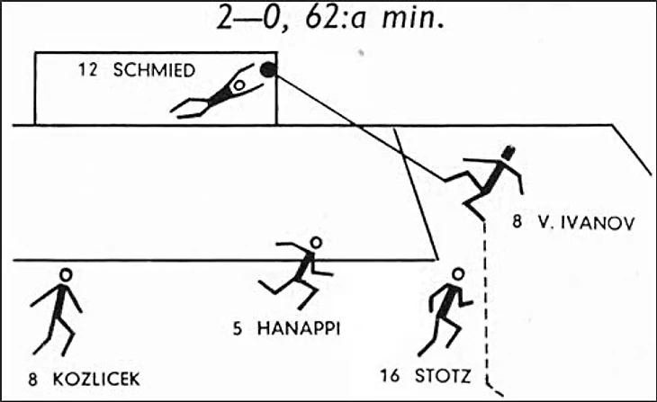 Уже на 15-й минуте Анатолий Ильин вывел советскую команду вперед. Положение австрийцев стало катастрофическим, ведь для сохранения шансов на выход в плей-офф им нужно было побеждать.