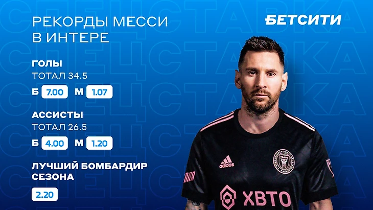 Рекорд по голам за сезон. Больше всего за один сезон МЛС забил Карлос Вела — мексиканец сделал это в 2019 году в составе «Лос-Анджелеса». Шансы Месси превзойти это достижение оцениваются котировкой 7.00.