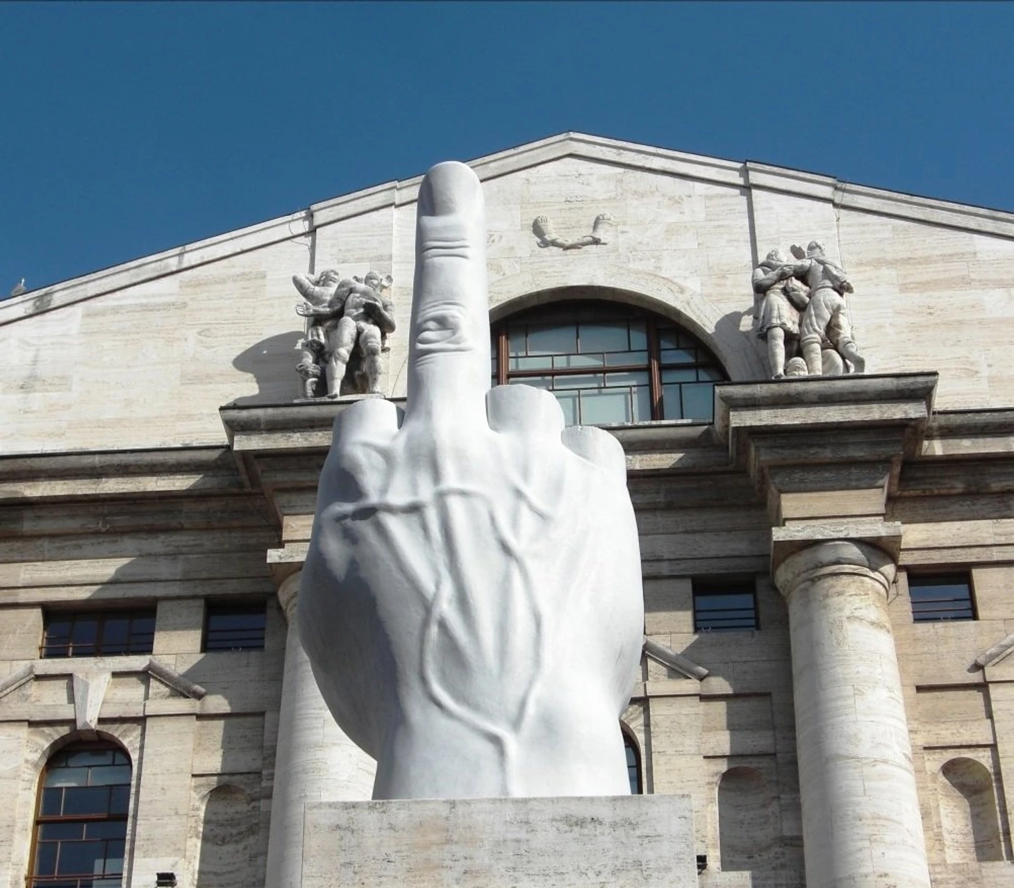 Примечательно, что красуется эта четырехметровая кисть с гордо поднятым вверх средним перстом не где-нибудь, а на площади Аффари (Affari) напротив здания Миланской фондовой биржи. Все остальные пальцы отрублены – многие связывают это с непоколебимостью идеалов автора, другие – с силой воли, дающей возможность противостоять безжалостности современного мира, – интерпретаций может быть огромное количество.