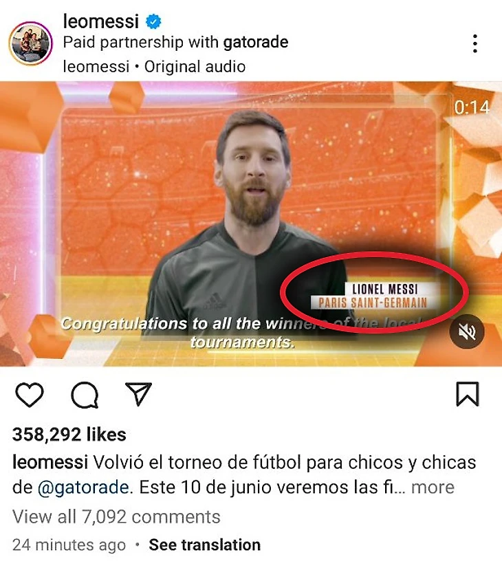 Вероятно, это связано с тем, что технически до 30 июня аргентинец является игроком французского клуба. Но все равно, после того, что случилось за последнюю неделю, забавно видеть подпись «Пари Сен-Жермен».