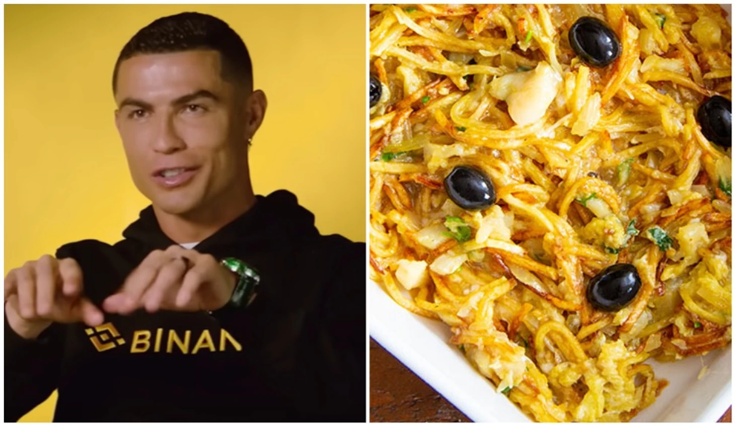 Любимое блюдо Роналду называется Bacalhau à Brás − это классическая португальская еда, которая готовится из измельченной соленой трески или, как ее называют в стране, бакаляу, лука, мелко нарезанного жареного картофеля и скрэмбла из яиц.