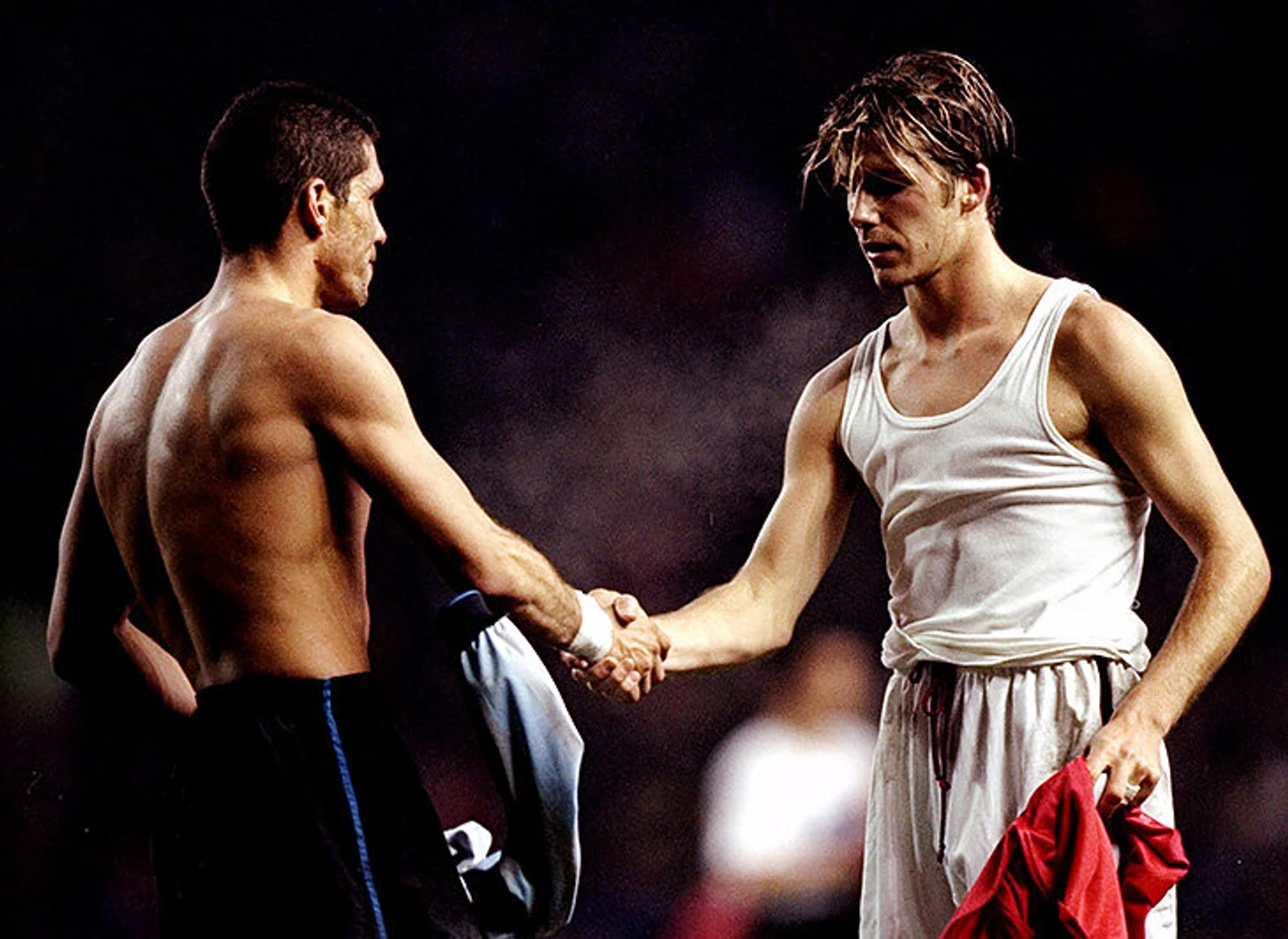 Летом 1998-го Симеоне спровоцировал Дэвида на удаление в начале второго тайма матча 1/8 финала чемпионата мира, после чего Англия проиграла по пенальти. В раздевалке Бекхэм извинился перед партнерами, но в ответ услышал только Тони Адамса: «Не думай, что подвел нас. Ты отличный игрок, и я безумно тебя люблю».