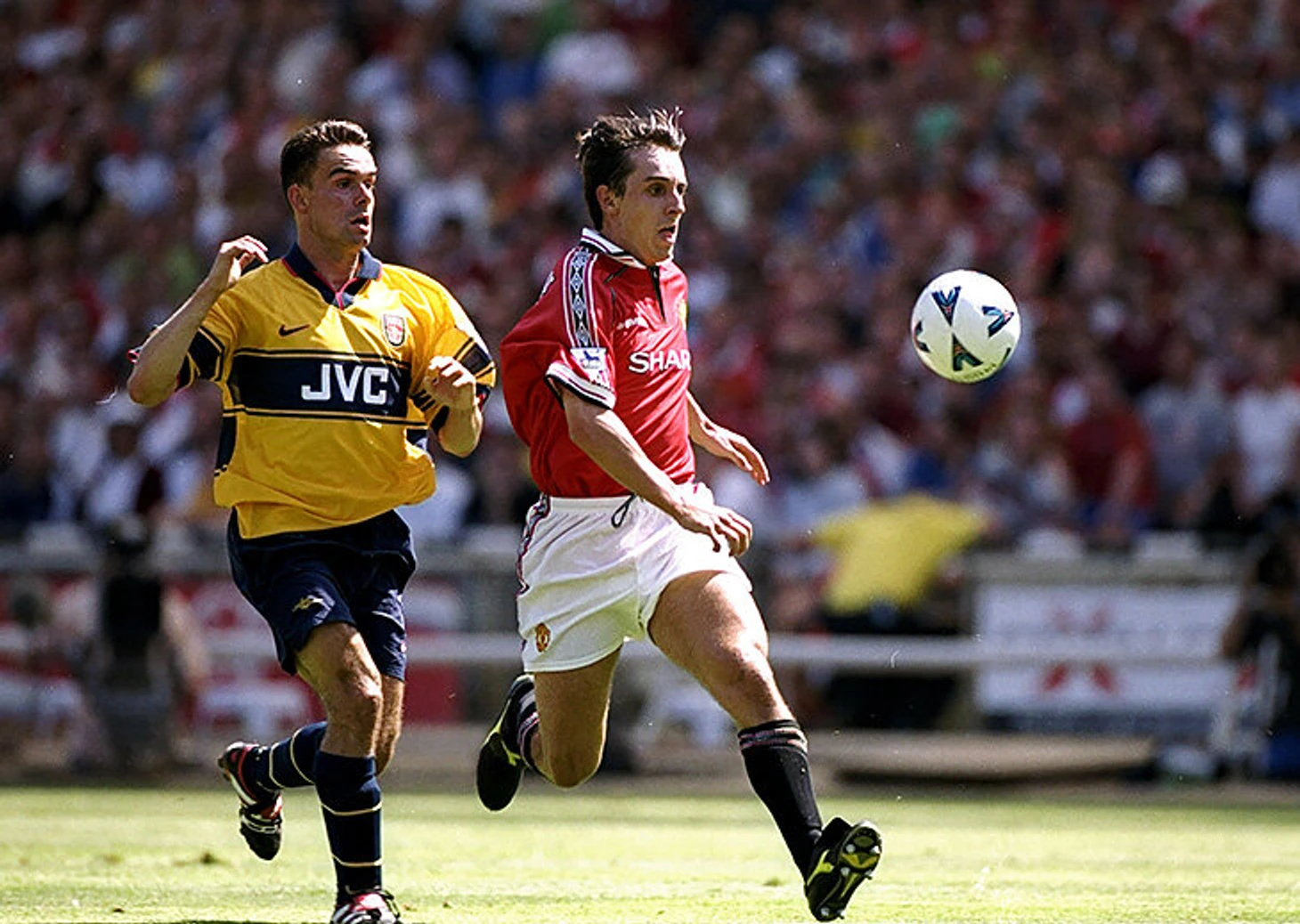 «Когда мы получали мяч и бежали вперед, я смещался с правого фланга в центр и закрывал Баджо, – говорил Невилл. – Это отвлекало меня от атакующей игры, зато Роберто не нанес ни одного удара. Левый защитник Денис Ирвин тем же способом нейтрализовал Юри Джоркаеффа.
