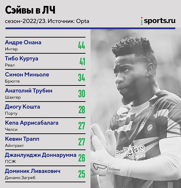 А еще камерунец – лучший в ЛЧ по сухим матчам, сэйвам и ожидаемым голам. Хотя на старте были сомнения, что он вытеснит Хандановича из основы.
