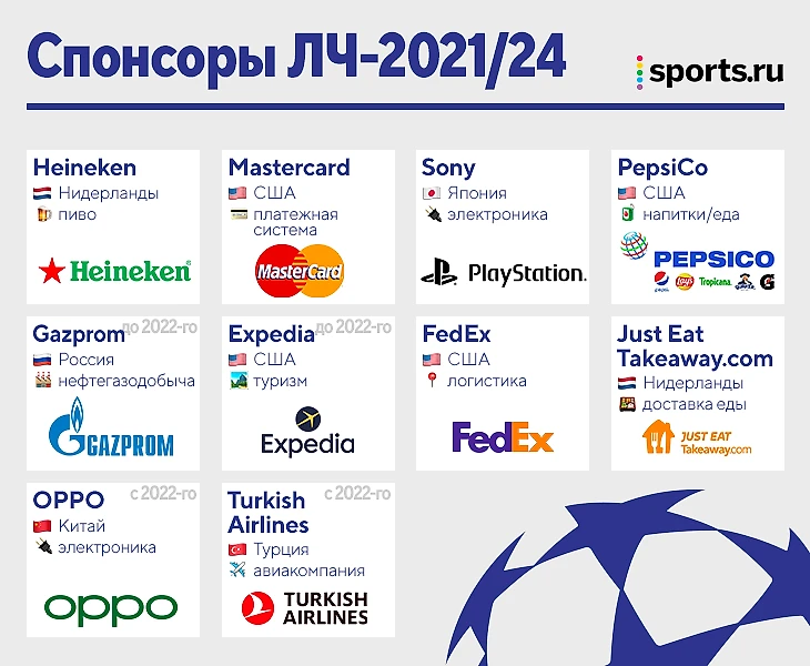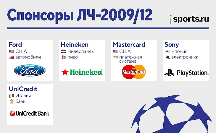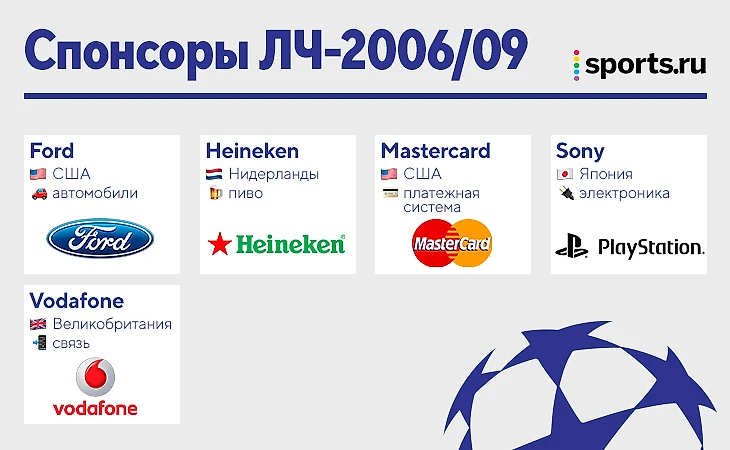 ЛЧ работает вдолгую: 30 лет с Heineken и MasterCard, 26 – с Sony, 22 – с Ford