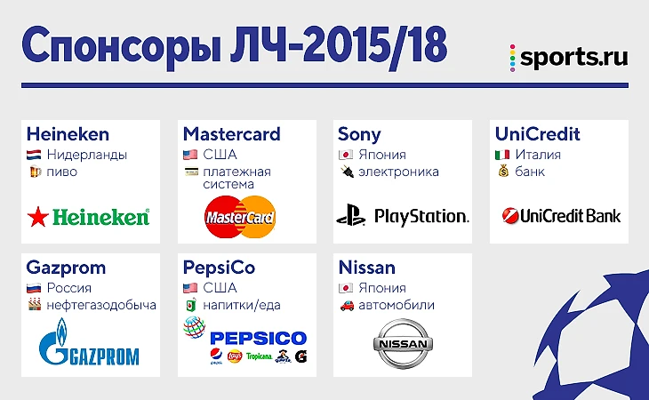 Спонсоры выстраиваются в очередь, чтобы прикоснуться к самому узнаваемому турниру в клубном футболе. Партнеры довольны результатом, поэтому меняются не очень часто – некоторые компании с УЕФА еще с 90-х.