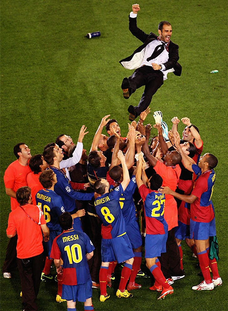 Гвардиола моментально заявил о себе с «Барселоной» в сезоне-2008/09, первом для каталонца на высшем уровне. А ведь его кандидатура была под вопросом: руководство каталонцев контракт с Жозе Моуринью, но исполнительный директор Чики Бегиристайн решил сделать ставку на молодого тренера «Барселоны Б».