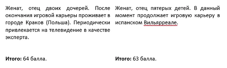 Личные достижения: в этом пункте поляк опередил испанца, так как, по моему мнению, присвоение звания почетного гражданина города важнее, чем медаль, которую дали столь за личные заслуги, сколь за командные.