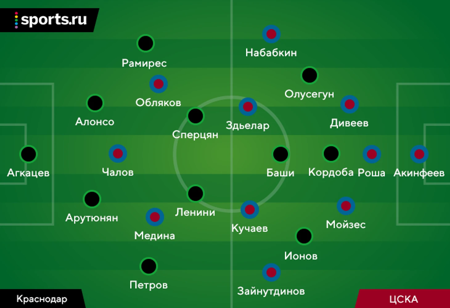 «Краснодар» вернулся к этой идее: Станислав Агкацев выиграл конкуренцию у Матвея Сафонова, 18-летний Георгий Арутюнян снова вышел в старте, Сергей Петров занял место Сергея Волкова, Джон Кордоба окончательно восстановился, а Алексей Ионов и Олакунле Олусегун отвечали за гибрид при обороне.