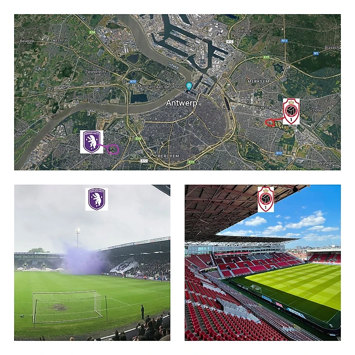 Антверпен играет на Bosuilstadion, 51°13'56.7"N 4°28'19.5"E - Google Maps , многофункциональной арене на 16 тысяч зрителей (это после реконструкции, раньше она вмещала гораздо больше).