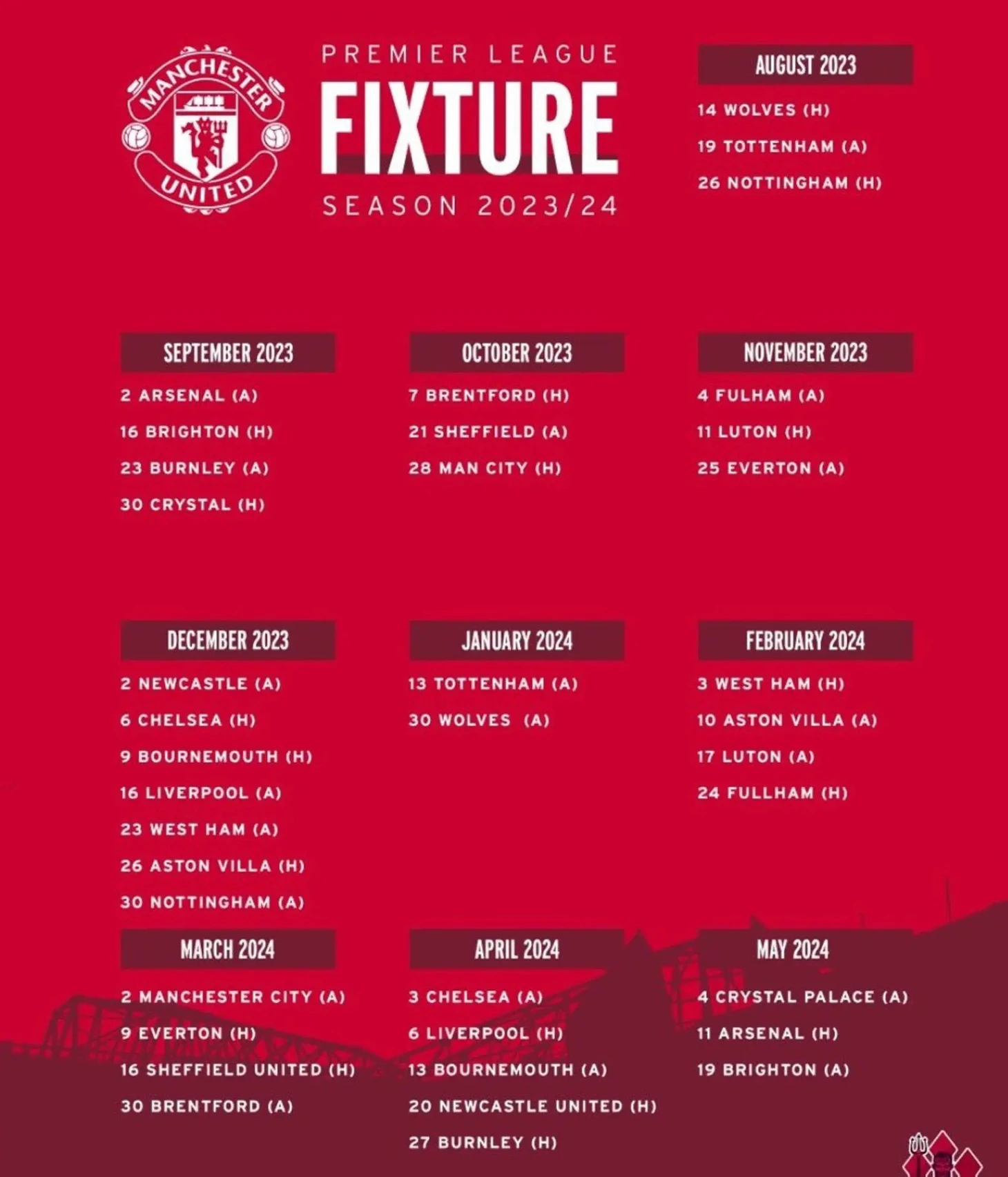 Вот полное расписание матчей «Юнайтед» в следующем сезоне Премьер-лиги