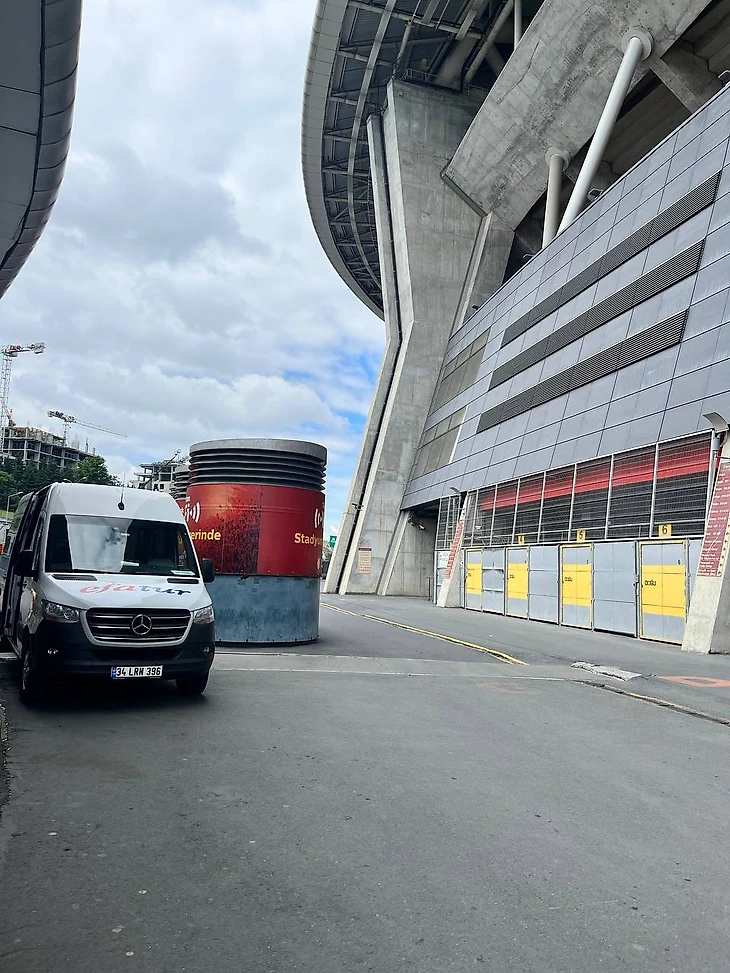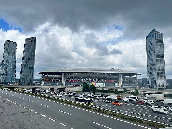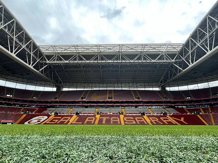 Галатасарай – многократный чемпион страны. Повсюду в городе висят полотна с его лого и чемпионством. Стадион находится на окраине, добраться можно на метро. Вокруг шумная дорога, жилые дома и один ТЦ. НЕФ - коммерческое наименование, а оригинальное - Спортивный комплекс Али Сами Ен. Вместимость стадиона - 52 652 зрителя.