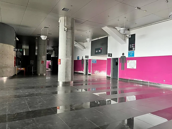 Затем вы попадаете в подтрибунное помещение и проходите в домашнюю раздевалку (да-да, у них тут всё ок, проходите, смотрите).