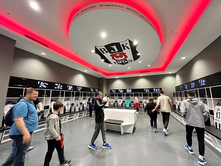 Из музея группу забирают в тур. Экскурсию проводят на турецком и английском языках. Сначала вы оказываетесь в подтрибунном помещении у микст-зоны.