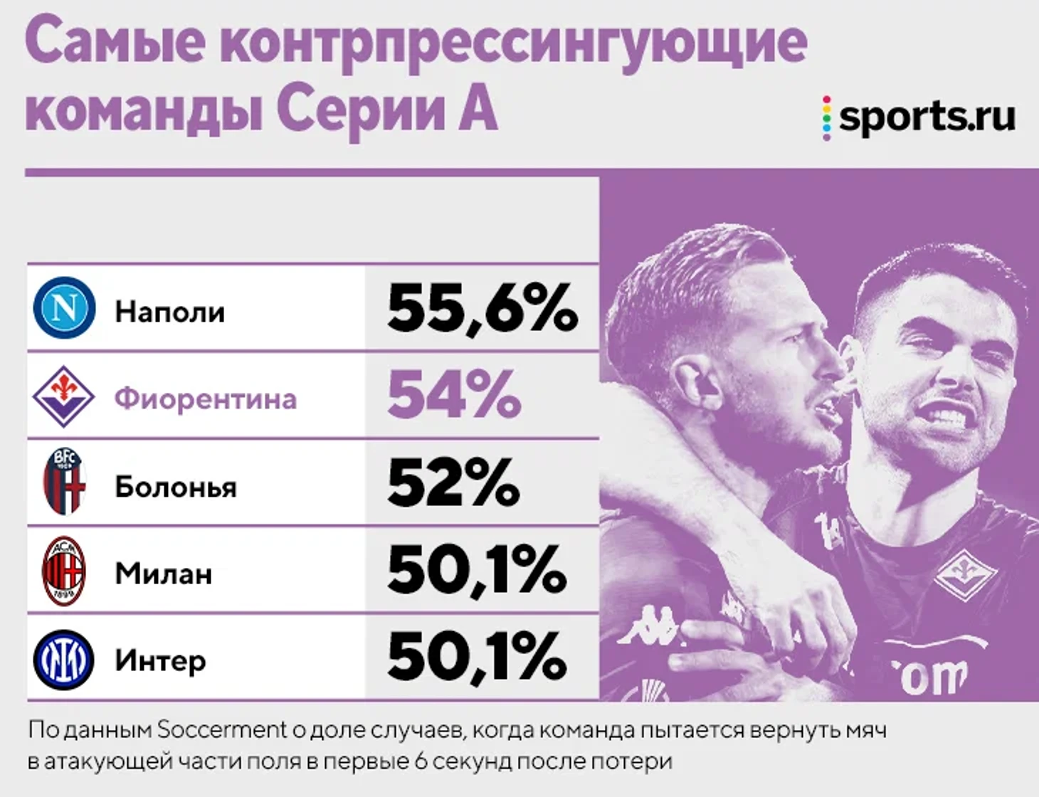 Взять в свои руки ход игры, а затем делать ставку на то, чтоб до её конца не отпускать инициативу – не очень-то итальянское футбольное кредо, согласитесь. «Фиорентина» по итогам сезона вошла в десятку (!!!) самых доминирующих команд Старого Света с процентом времени, проведённом в финальной трети, в 34 (это вообще третий результат после «Сити» и «Арсенала»).