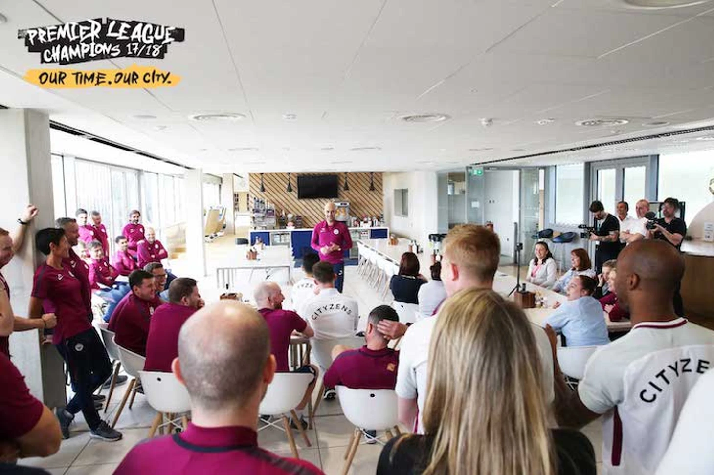 После завоевания первого титула с «Сити» Пеп собрал всех 82 сотрудников, выступил с благодарственной речью и организовал совместную групповую фотосессию.