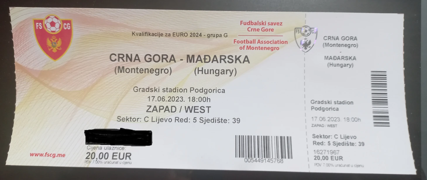 Тут стоит еще рассказать о таком нюансе. Я до этого ни разу не был на матчах сборных ни то что в других странах, но даже в России. И мне трудно сказать, во всех ли странах такие правила, но в Черногории болельщикам других сборных нельзя купить билеты в кассе. Все билеты продаются только при наличии местной ID карты (не путать с FAN ID). Но так как у меня есть такой документ, то билет мне продали без каких-либо проблем. А вот болельщики Венгрии, просили местных купить им билеты, на что те с удовольствием соглашались и за какую-то плату (тарифов не знаю) оформляли им на все возможные документы билеты. Так как на один документ можно купить не более трех билетов, то в ход шли водительское удостоверение, ID карта, загран паспорт