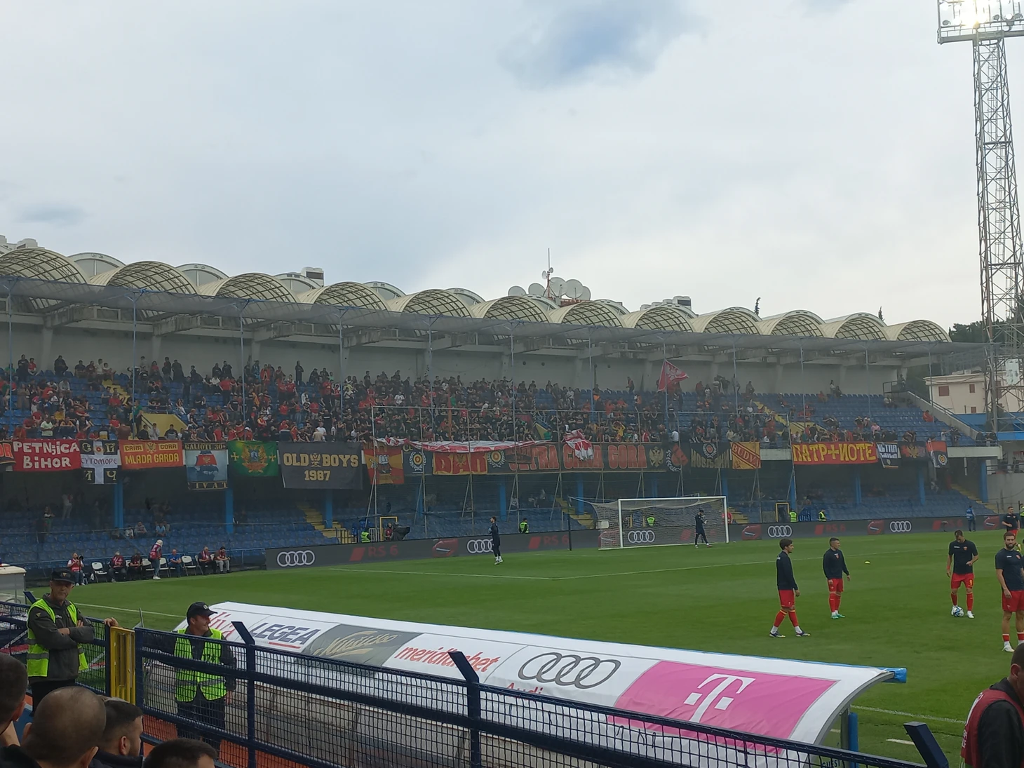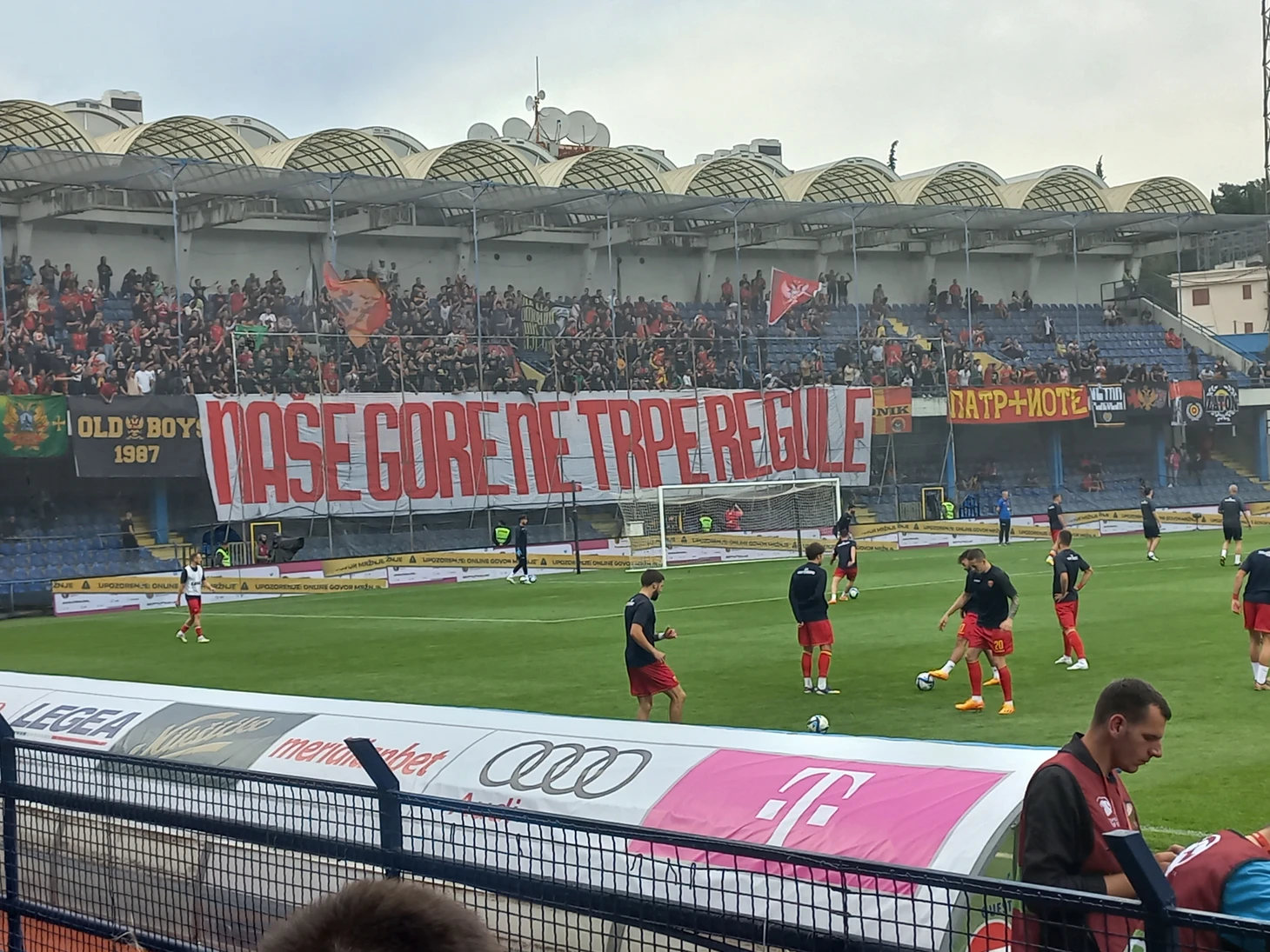 в любом случае, шмон на входе вообще минимальный и дружелюбный (привет животным с российских стадионов!). черногорская ультрас-трибуна, куда у нас были тикеты, была переполнена! соглашусь, шиза была на уровне, я, не зная слов, втянулся быстро, хотя было очень неловко