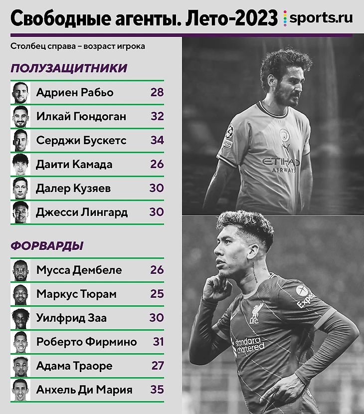 Летом 2023-го заканчиваются контракты многих топ-футболистов. Это не значит, что все они точно уйдут: кто-то (как Де Врей) уже в процессе переподписания с нынешним клубом.