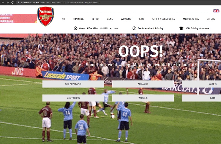 «Фирменные футболки Arsenal Home Authentic сезона-2023/24 временно недоступны, пока исправляется ошибка в дизайне. Версия Replica (обычная) домашней футболки не пострадала», – говорится в заявлении компании.