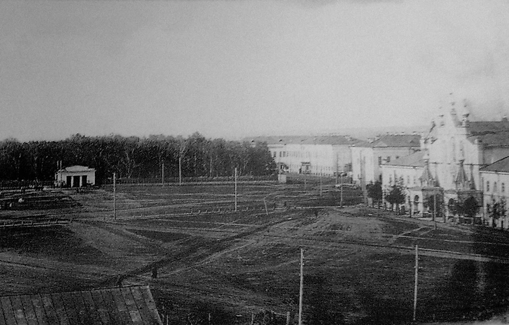 Начнем с обзора Соборной (Кафедральной) площади города Вятки в начале XX века и сейчас. Из-за построенного в 1930-50-е гг. стадиона на площади были утрачены видовые точки на старейший сад губернского города (Александровский) и корпуса Преображенского женского монастыря.