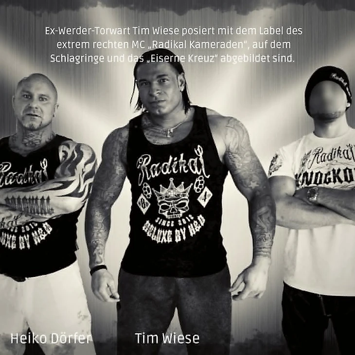 А вот данные немецкого издания Stern: Дерфер не только владелец фитнес-зала, но также основатель клуба мотоциклистов Radikal Kameraden Bremen с крайне правой позицией. На более старой фотографии, снятой в 2014 году, Визе позирует с Дерфером и третьим человеком. 40-летний мужчина одет в черную майку с логотипом мотоциклетного клуба, на котором видны дубовые листья и кастеты − самые популярные символы ультраправых. Вдобавок Дерфера связывают с известными неонацистами – например, с Ханнесом Остендорфом, вокалистом панк-рок-группы Kategorie C. Сам Дерфер называет себя патриотом.