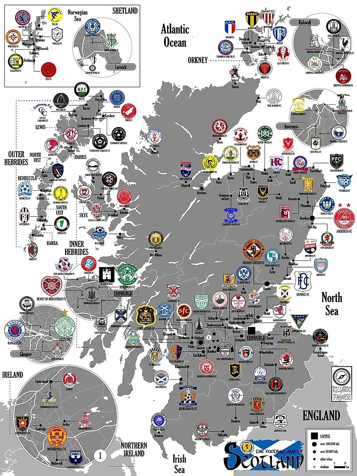 Актуальная география расположения шотландских футбольных клубов в сезоне 2023/24!