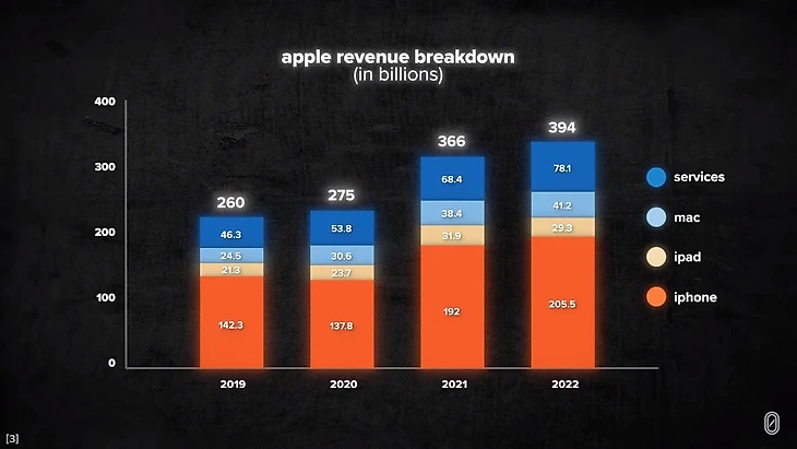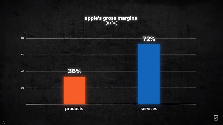 После "iPhone", вторым по величине источником доходов компании является ее сервисное подразделение. В то время как первая версия экосистемы была разработана, чтобы постоянно предоставлять новые устройства, экосистема 2.0 больше ориентирована на улучшение услуг на этих устройствах. "iCloud", "Apple Music" или "Apple Fitness". Чем больше у вас устройств, тем лучше становятся эти сервисы.